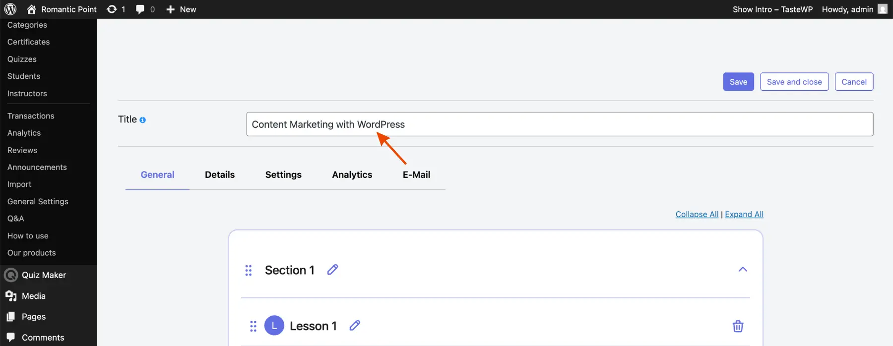 Once you add a new course add the course name first. This title shows up when people see the course listed on your website.