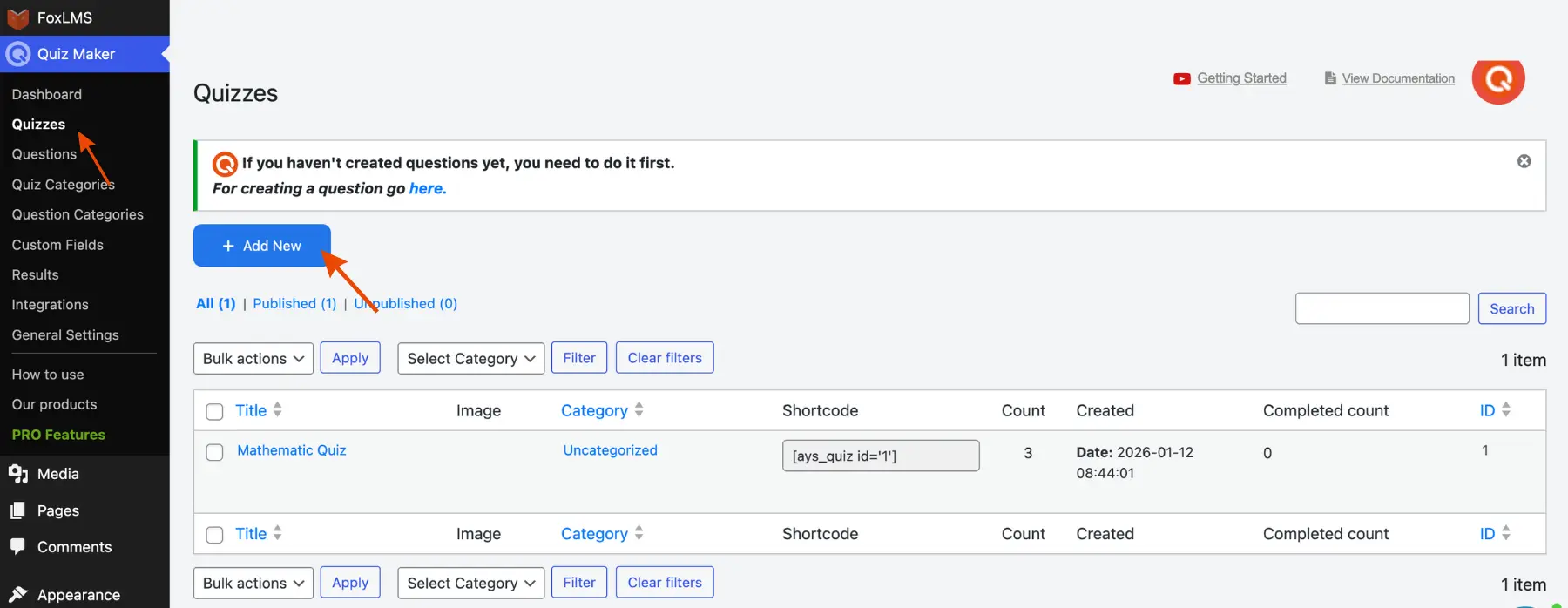 To set up a course that includes lessons and dynamic elements such as quizzes you need the Fox LMS installed and activated.