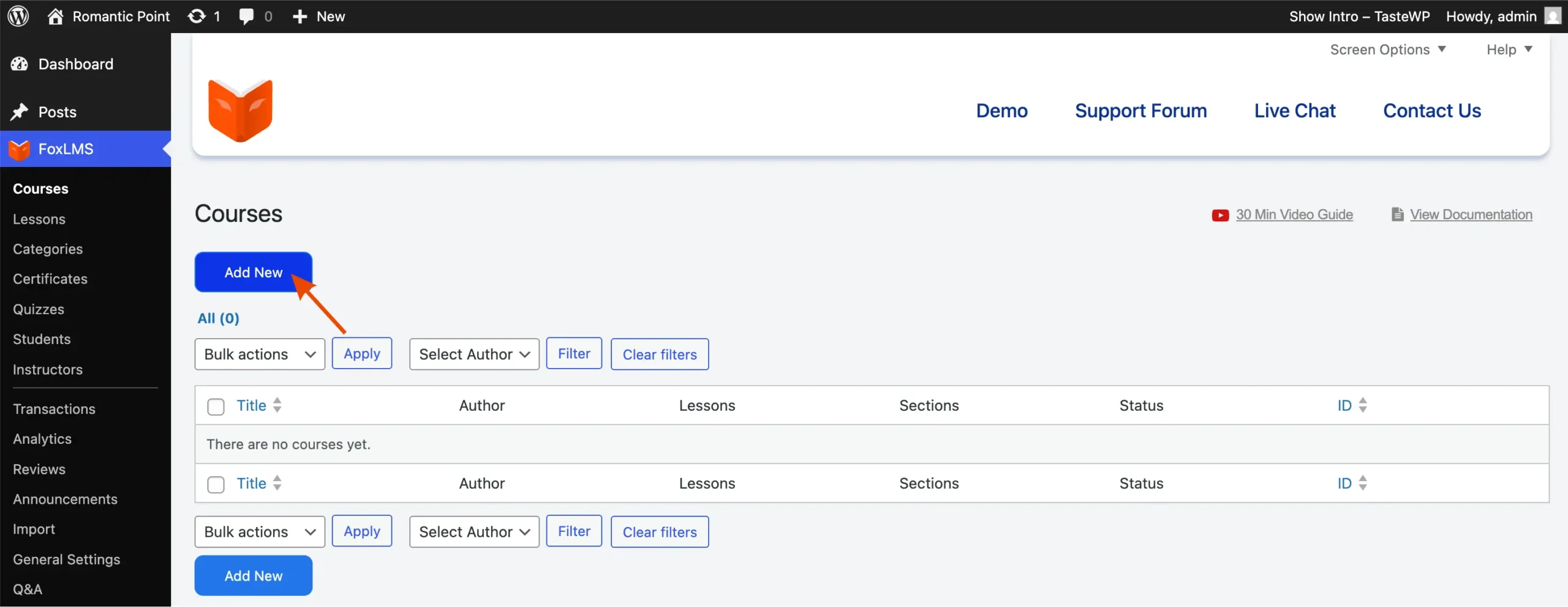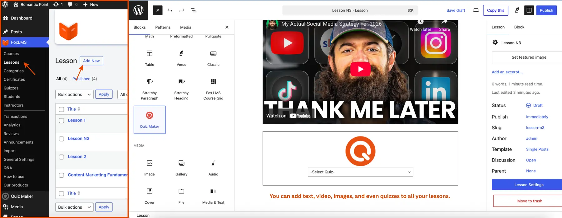 Using the Fox LMS plugin, you can create a simple course in WordPress by following these steps: