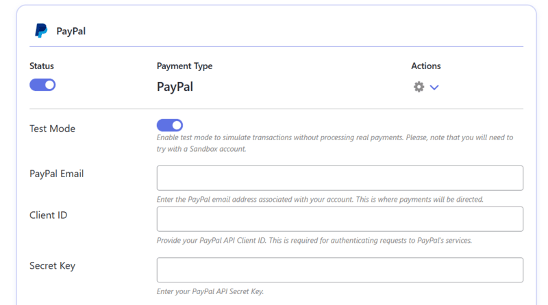 After this, you need to fill in the PayPal Email, Client ID, and Secret Key.