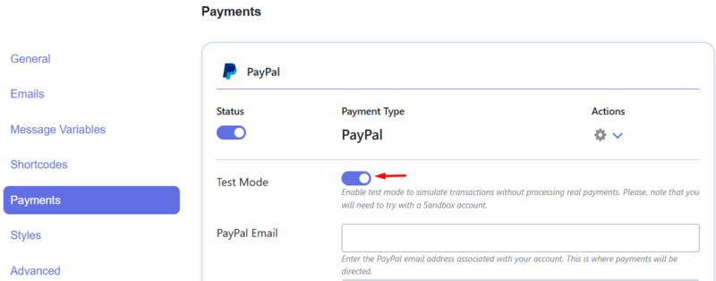 Also, if you want to use PayPal in a test mode, you can tick the Test mode Toggle.
