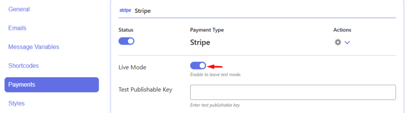 If you want to turn off the Test payment mode and go ahead with the Live mode, then tick the Live Mode toggle.