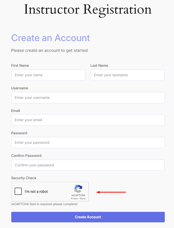 - Fox Instructor Registration – As soon as the instructors want to register for your LMS platform, the spam protection will be displayed.