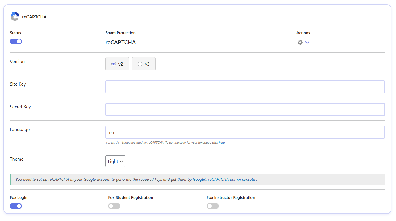 This documentation will guide you through enabling and configuring Google reCAPTCHA in your LMS.